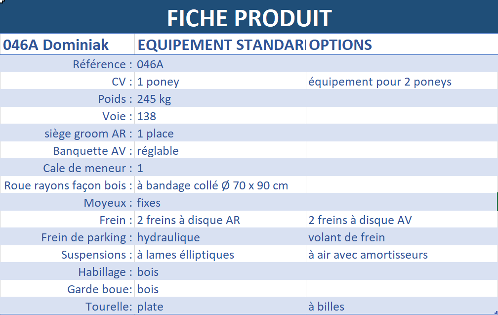 Le prix TTC correspond à l' équipement standard de la fiche produit